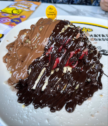 Read more25.07.2024 tarihinde 2 aile gittik gitmez olaydık. Waffleın birinin içinden daha 2 çatal aldık doğru düzgün tatma şansı bile olmadan sinek çıktı durumu çalışanlara bildirerek OLABİLİR diyerek o tabağın değişimini talep ettik, garson tabağı aldı yaklaşık 10-15 dk sonra tabakla gelerek müdürmü işletme sahibimi diyerek değişim yapamayacağını sineğin servisden sonra düştüğünü söyledi, daha waffleın nerdeyse tamamı duruyordu yenmedi bile dedik . Evliya gibiler sineğin kendileri yaparken düşmediğini veya meyvelerin içinde olamadığını biliyor bunlar mübarek insanlar olmaları gerek. Sinekli tabağı getirmiş değişim yapamayacaklarını söylüyorlar, müdür öyle demiş sinekli yiyeceği her daim yiyorlarki o tabağı getirirken utanmada yok sinekli tabak geri geliyor. 3 kuruşun peşine düşüyorlar. 3 tabak waffle istemişiz 1 inden sinek çıkmış art niyetlisiniz. İşin En garip tarafı bilerek sadece yüz kızarması için hesabı bahşişine kadar fazlasıyla ödedik ama herhangi bir utanma, yüz kızarması veya özürlenme bile olmadı. İşletme ve esnaflık...