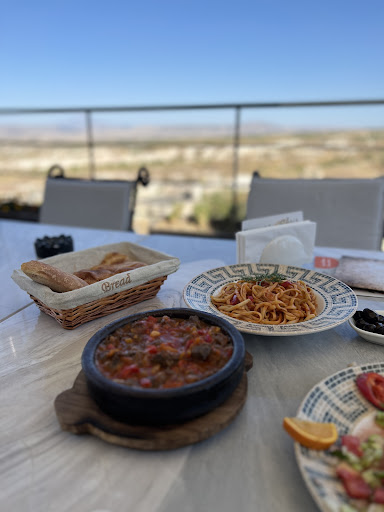 Read more5 stars for service and view. We had high expectations for food due to the 5 star reviews. But sadly the food was lacking in freshness and flavor. We ordered the local dish - Nevsehir beef pan which cost 18€. It was incredibly dry and tasted reheated. I ordered the spaghetti Neapolitan, the tomato sauce tasted like from a can. We also ordered the spicy paste and the shepherds salad (which they forgot the parsley). The salad was the best part of the meal as it tasted fresh. I would come here for a sundowner drink, or at least lower expectations, as the service and view...