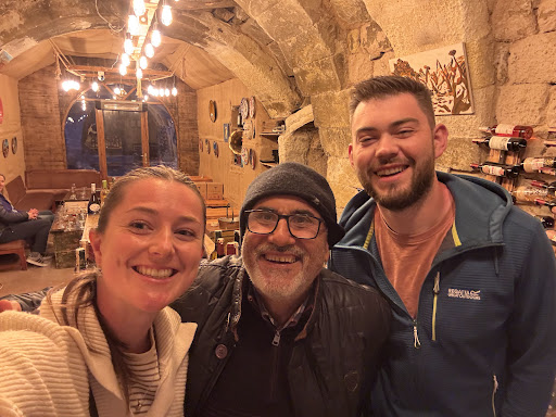 The owner is one of the kindest, most passionate people we’ve met in the wine world. His love for wine, hospitality, and the culture around it is deeply felt in every part of the experience. The space itself is incredible—set in a 4,000-year-old cave that was once a wine press. The symbolism of honoring the space’s history while bringing people together over wine made the experience even more magical.