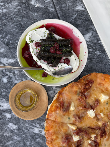 Read moreMichelin recommeded restaurant. The ambiance is really cool. Little fire pits outside in the winter. Inside the restaurant is peaceful and we are warmly welcomed. My cousin is regular at this restaurant so we were lucky to be served by the favorite dishes. My favorite was Şevketibostan (a type of wild Mediterranean herb, also known as Golden Thistle) it was greatly served olive oil based. One of the other signature dishes of the restaurant is olive oil based too. Grape Leaves stuffed with rice and sour cherries ( Traditional Turkish dish interpreted slightly different from the original recipe by the chef ) I loved it. Turkish style thinly sliced and fried live served over delicious hummus, it was great. Also pizzeria roast beef with rosemary was really delicious. Context of the servings were really good, reminds you that restaurant really deserves Michelin recommendations....