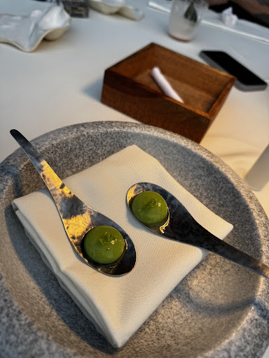 Read moreThey do not deserve a michelin star, plain and simple.... At best a guide level resturant, particularly when it's compared to OD Urla or Vino Locale. We had a table for four, and all went for the tasting menu (Fall,2024). Testing started with Kambucha, which was refreshing but not striking.. Our amuse-bouches were artichoke pate, ink fish crochet and chickpea brioche. Pate was so dull and insignificant. Creamy and suprising Chickpea brioche was one of the better parts of an overall less than medicore experience and ink fish crochet was nice but forgettable. Bread and olive oil were high level. Fumed bonito was well made however the souce and leafs were so plain and standard it undermined the bonito. Beet and tuna crunch dish was fresh but once again not suprising or striking. Mushroom garum was so promising but was missing the element of suprise -once again. Tortellini was sub par but the chicken broth consume served with it was tasty. We tried both main dishes. Beef tongue was well made but tuna was one of the worst tuna dishes I have ever had. Overcooked and with a creamy and yet plain and insignificant sauce. It's cut was not suiting to the fish. Pomegranate granite had elderflower and bergamot mint and was OK. The Jerusalem artichoke dessert was by far the best dish , i wish the rest of the menu had the same standard. Other desserts was so bad, I do not even want to mention. As to the service sommelier was cheerful but not helpful or knowledgeable. Not for a restaurant to this claimed-standard. Head- waiter was also cheerful but a bit arrogant. Finally transportation service was dreadful. For a resturant charges at this rate our experience was...