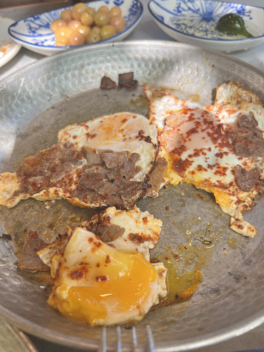 So pathetically bad 🤦🏻♀️. We waited for 33 minutes until they brought us the tea snd cold items, which was missing the turkish ‘kaymak’. Then we received their tasteless eggless menmen + uncooked scrambled eggs that had 2 big egg shell pieces in the bottom and made us super disappointed 🙂. Besides all, at the begening we were forced to sit in a cold side corner, because one waiter insisted that all other tables were reserved. We were freezing with no food after 30 minutes, so we asked another waiter if we can move to the sunny area and he immediatly agreed! This place needs a full reconstruction for...