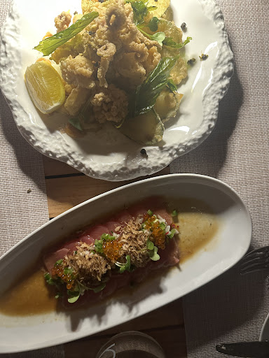 The food was delicious and we were very happy with the portions we received. We started with complementary focaccia bread made in house, served with organic olive oil and snapper rillette. I could've eaten only that for my entire meal. It was so flavorful! We took two appetizers: frito misto on tzatziki and tuna crudo. We highly recommend both!