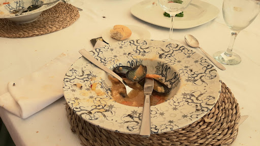 Read moreComer con moscas. Hicimos una reserva y nos pusieron en una carpa exterior porque estaba lleno. La comida muy bien y el servicio estupendo pero si no tienen un espacio adecuado para poner comensales deberían poner el cartel de completo y no coger reservas, por eso les doy una mala puntuación. Una comida de amigos muy desagradable por la cantidad de moscas que había. Muestro en la foto el segundo plato, hay 10 moscas sólo en el plato. No tienen nada para evitarlo (les recomendaría unos ahuyentadores de moscas-ventiladores de mesa que hay o mosquiteras en la carpa), por lo que comes literalmente rodeado de unas cuantas decenas de moscas, intentando cubrir los platos con la servilleta para que no aterrizaran en el plato aunque no podías evitar que se posaran en los cubiertos (por cierto, tuvimos que pedir que nos cambiaran algunos platos y copas porque estaban sucios). Muy mal, de verdad, lo que era una reunión de amigos muy esperada se convirtió en un suplicio que deseábamos terminar. Si no pueden evitar esto no tienen que coger reservas porque son 32 euros por persona para comer rodeados de...