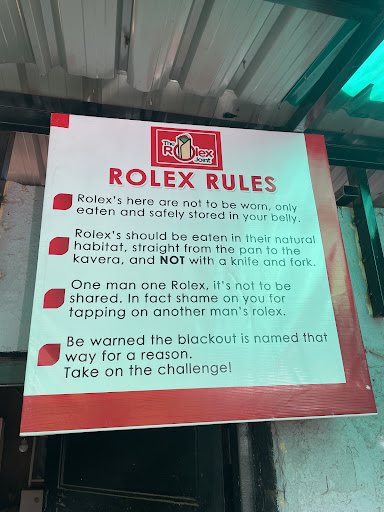 Read moreIts a small kiosk like eatery...and the Rolex was amazing....took a little longer than the 10 minutes we had been told, but well worth it!!!! They have a small veranda seating area, which doesn't have much light, but I guess I shouldn't have been trying to read a novel, in the fading evening light, but I was trying to kill time till the Rolex showed up... The Rolexes come in catchy names and are reasonably priced and yummmy beyond measure!!! Definitely...