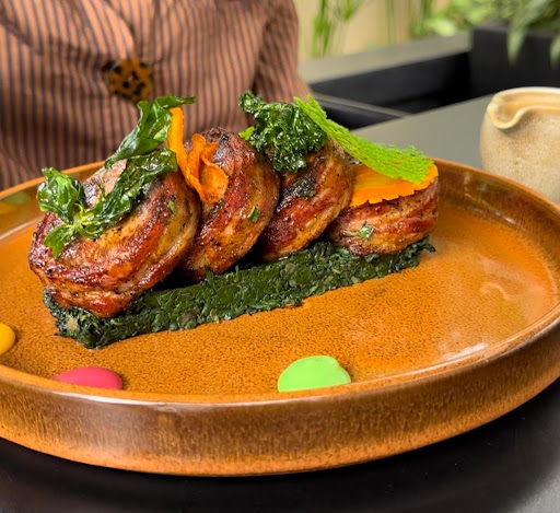 If food is the music of love, then Chef Ernest is composing symphonies in that kitchen! Honestly, Iâm not sure if I dined or had a spiritual experience with pork. We were served bacon-rolled pork nestled gracefully on a bed of spinach ; not tossed, not dumped; nestled, like a sleepy prince on silk sheets. The menu description alone had us drooling before the plate even left the kitchen. You donât just read the menu at Aldea, you pre-visualize your taste buds doing the cha-cha.