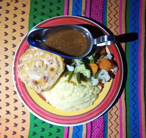 A Dutch friend recommended Mad Hatters and there was a lively crowd at the bar and pool table around 9:00 p.m. Tuesday night. Pizza menu looks authentically Italian but could not resist sight of homemade pies! Great pastry with big serving of mash and veg (for extra 8,000). This is a very typical British dinner. Big serving of vegetables but rather overcooked. The menu has an unusually good selection of big stodgy desserts! Did not try any but definitely worth a revisit. They also do loads of deli items to take home. Friendly staff but only two managing the garden so had quite a long wait at times. Overall good...