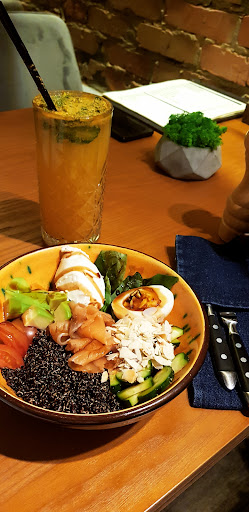 The interior is bold but very pleasant. Tables are spread evenly and comfortably. Music is set so well, that you don't recognise a particular composition, yet it sets the tone and slightly fills the silence, leaving a plenty room for conversations.
