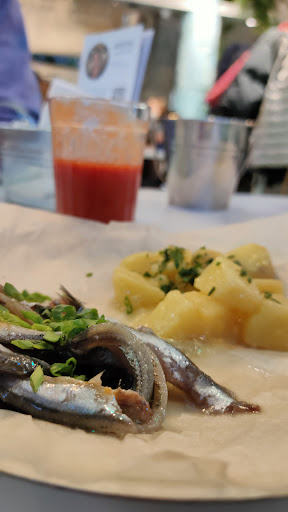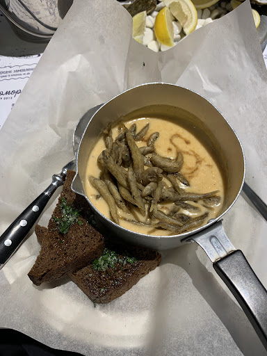 Read moreНа прошлой неделе посетили новое заведение в нашем городе. Впечатления остались неоднозначные . То, что очередь на входе в ожидании столика - это в принципе нормально и терпимо . Оставляете свой номер телефона администратору и можете пройтись прогуляться или посидеть в машине. Нам перезвонили буквально в течении десяти минут. Столик был в нижнем зале, к сожалению находиться там нереально . Работают мощные вытяжки , буквально через минуту мы задубели и захотелось надеть шубы ибо сидеть в юбке и рубашке невозможно . Попросили официанта пересадить нас за ближайший освобождающийся столик, на что он ответил : "холодно будет везде" . Ок, не смирившись с диким холодом (по ощущениям будто попали в холодильную камеру ), я пошла на поиски администратора , чтобы решить сию проблему . Прошу , чтобы нас пересадили в верхний зал , у нас от холода уже не сгибаются пальцы на руках и появился насморк ... Далее цитирую администратора : "К сожалению ничем Вам помочь не могу , в выходные дни мы не пересаживаем, очень много людей , потом у нас неразбериха со столами и заказами . Я Вас очень понимаю , я здесь работаю целый день и у меня тоже ледяные пальцы и насморк - можете попробовать мои руки ". Я ушла за свой столик ни с чем . Где-то через десять минут к нам подошли и предложили пересесть через пару столиков от нас , где нет прямого попадания вытяжки . Это улучшило немного ситуацию , но не сильно. Просто напрямую не дуло , но холод никуда не девался. По кухне - это отдельная тема . Заказали 2 порции анчоусов во фритюре , 300 грамм мидий в сливочном соусе , бэби кальмары , гренки и напитки . Спустя 15 минут нам вынесли анчоусы , после , минут через пять напитки и гренки . Съели мы эту рыбу и сидим ждём где наш остальной заказ , гренки уже холодные ( к слову они заказывались к мидиям , там много соуса) . Смотрю по времени - уже прошёл час с момента заказа . Ещё минут 10-15 официанты выясняли на кухне за наши мидии с кальмарами и ещё через минут 15 нам вынесли . Когда я начала возмущаться - почему я здесь должна так мерзнуть и ожидать по 1,5 часа заказ при этом пригрозив негативными отзывами - мне предложили выбрать какой нибудь десерт в виде компенсации . Естественно я отказалась , нет желания находится там лишнюю минуту, чтобы не заболеть . Скажу одно - было вкусно . Нам понравилась кухня . К большому сожалению - жирные минусы...