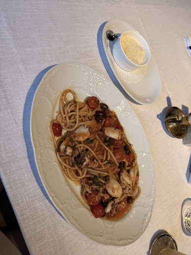 Антураж: классика. Белые скатерти, правильная сервировка. Бывает разное настроение, и сегодня было именно такое. Нам понравилось. Особенных похвал заслуживает музыкальная подборка — это то, что крайне непросто подобрать таким образом, чтобы было комфортно, но стильно. Здесь — все так!