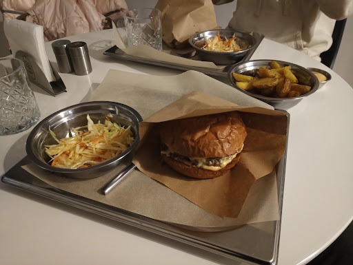 Read moreСмачні бургери. Я правда куштував тільки "супер сирний" і він насправді соковитий, але нажаль до цієї страви не дають ні гумових перчаток, ні паперового конверта. І оскільки він соковитий його нутрощі постійно намагались збігти:) тому всі руки були в сирі і соусі. Але смачно. Ще сподобався інтер'єр, це самий мінімалістичний інтер'єр який я бачив:) ще один мінус відсутність велопарковки. Єдине до чого вдалось причепити велосипед це джазова термінаторша з...