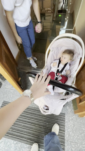 Веселе почалося ще на вході. Візок (минулий раз ми приходили з іншим) просто не проходив у двері. Мій чоловік не розгубився! Відкрив засувку, завіз візок разом з донею. А далі… знову трабл! Сходи.