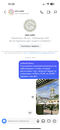 Read moreХотите быть обманутым с испорченным вечером тогда Вам 100% в этот «ресторан». За неделю хотела забронировать столик,а точнее 13.09.,написала в инстаграм с просьбой забронировать столик на 21.09.,с определенным видом,в историях пиарят что принимают бронь через инстаграм но на практике,моё сообщение было прочитано через 10 минут,а отвечали мне аж 4 часа!😄 Я позвонила в «ресторан»и сказала что это абсурд,прочитать и не ответить,(вот как раз таки после звонка мне соизволили ответить)а если что-то нужно уточнить об этом можно предупредить,написав: «Добрый день,уточним детали и предоставим информацию»это то,как делается в нормальных заведениях которые принимают бронь через инстаграм,а не прочитать и молчать,перед мной извинились и в знак своих извинений они пойдут на уступки и забронируют столик с видом на Софию,хотя сначала утверждали что они вообще не бронируют конкретные столики,но!в так званных «правилах»ресторана про это ни слова,да и бронирование под собой подразумевает сидеть там,где хочется мне,для этого и существует бронь,это тоже самое что Вы приедете в гостиницу заранее выбрав понравившийся Вам номер,а по-факту Вам скажут выбирайте что угодно кроме этого,сюр! Не первый день живу на свете и это моя не первая бронь в ресторане. А у вас же бронивание это не брониварание,а «уступки». Наступает вечер 21.09.,мы с мужем приезжаем в ЭТО,нас встретила девушка не то хостес,не то администратор,я озвучила своё имя и что мы бронировали столик и каким был мой шок,когда она проводит нас на «нижнюю летнюю террасу»со словами выбирайте любой столик! Любой столик!Уважаемые,когда ты бронируешь стол,Вас проводят именно к бронируемую столу,а не «какой хотите»если бы я хотела «какой хотите»я бы приехала свободным посещением,а не бронируя за неделю! Ваша терраса которая находится под сплошными брезентовыми зонтами это даже не +/- то,что я отправляла в пример расположения с каким видом я хотела столик. Девушка которая общалась со мной по телефону,уверяла,что тот стол с видом(скриншот)это для мероприятий,но она выберет идентичный столик с видом на Софию. По итогу нас садят на той самой нижней террасе с видом на брезентовые зонтики,когда я попросила пригласить администратора им же оказалось та самая девушка хостес,которая начала уверят что это самые ЛУЧШИЕ месте,но только есть одно НО,почему-то там где самые «ЛУЧШИЕ»места было пусто,от силы там было занято 3 столики,а вот там где действительно шикарный вид было занято абсолютно-всё. Нам начали предлагать угощения но ребята,камон! Идя в ресторан я не жду бесплатной еды и угощений,я ожидаю увидеть то,что я бронировала!ЗА НЕДЕЛЮ!а если бы это был какой-то праздник?Вы бы испортили не только вечер но и праздник. После возмущений,а они вполне оправданы,девушка хостес-администратор делая одолжения предлагает посадить нас за стол где-то там который больше но якобы с видом на Софию,но после двух вышеперечисленных факапов настроения оставаться не было,поэтому мы просто встали и ушли туда,где клиентоориентированность и сервис на высшем уровне,в Вашем же случае до этих двух фактов Вам ещё расти и расти. Владельцу или управляющему стоит почаще заглядывать в отзывы,потому что негативных более чем и с этим нужно что-то делать,а не просто отвечать:Сподіваємось на ще один шанс,мне такое можете не отвечать,потому что у 