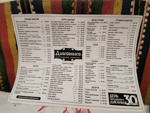 Так совпало, что посещение данного ресторана совпало с началом обильного снегопада в Киеве. Мы туристы и посовету таксиста приехали поужинать. Место с улицы выглядит роскошно, особенно укутовшись в снежное покрывало зимы. Были в понедельник вечером и людей было мало. Встретила нас дружелюбная официантка, дала нам выбрать самим место, мы сели у окна с видом на снегопад и заснеженую улицу. В ресторанах по мимо кухни, огромное влияние на положительный отзыв - это интеракция с официантом. В нашем случае девушка была учтивой, подходила, спрашивала все ли в порядке. При заказе блюд была возможность изменить блюдо в зависимости от предпочтений клиента. Например нам захотелось просто жареных грибов и нам их сделали, хоть в меню такого не было. Жене захотелось сок яблочно-морковный и ей его сделали, правда в чек внесли цену, как и за яблочный, так и за морковный сок)))), т.ч если будете такое заказывать, учитывайте (но сок был свежий, выжатый из яблок и моркови). По заказу, взяли украинский борщ ( не сказать, что был наваристый, но вкусный). А с хлебушком и чесночкомм, да ещё и с кусочками сала, просто объедение. Взяли два вида драников, с грибами и со шкварками (с грибами драники малость непрожаренные, т.к слишком толстые, а вот драники со шкварками самое то, такие, как должны быть). Телятена с вишневым соусом очень сильно понравилась жене, была очень мягенькая и очень вкусная. Я себе взял шашлык, на твёрдую четвёрку. Пиво гоголь нефильтрованное - на любителя, свежее, но с горчинкой. Немного смутил счёт, имейте ввиду, что чаевые и обслуживание уже приписывается в счёт, в нашем случае - это было 200 гривен. Смотрю на это ни как недостаток, а как особенность данного заведения, которое нужно учитывать. Прикладываю фото нашей трапезы, а также счёт. В любом случае заведение рекомендую. Еда вкусная, персонал душевный и приятный. Если будем в этих краях ещё,...