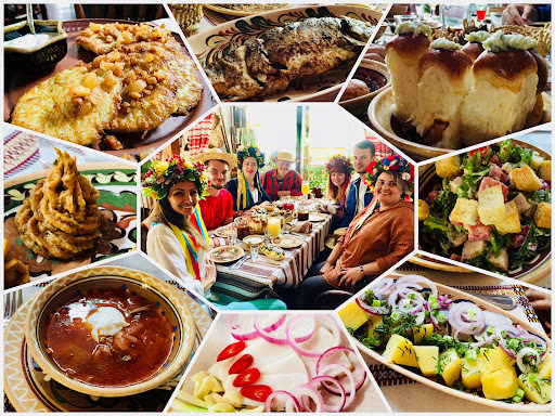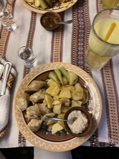 Read moreThis restaurant is one of our favorites in Kyiv, cause you are able to taste delicious Ukrainian food being dressed up in tradional Ukrainian festive clothing, such as "jupan" (jacket with embroidery) for men and "vinok" (flower crown) for women. Due to number of traditional dishes we ordered, our table covered almost half of all Ukrainian cuisine: "borshch" or traditional Ukrainian soup; "deruny" or potato pancakes; "vareniki" which are basically like ravioli, that can be filled with different stuff, like meat, mushrooms, all kind of berries, but the most often with cherries, blueberries or strawberries … So vareniki can be either salty, or sweet, thus taken as a main dish or as a desert too; “zrazy” or potato pancake filled with baked cabbige, mushrooms and/or meat; "carp", a fish that is very known in Ukrainian rivers and lakes; “oseledets” or salty herring, combined with mild touch of creamy potatos.. Mmmmmm, couldn’t be a better choice! The restaurant has a medium level of ACCESSIBILITY since there are 2 steps of stairs to get to the terrace and inside of the restaurant. But once you are there, it has enough accessible...