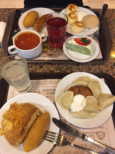 The first time I have been into this amazing chain has been in 2017, and honestly not much changed! The food is still amazing and reflectes the country's tradition cuisine which is what every country should do! Ukrainian salads, soups, potatoes, pastries and way more! The system of the place is also very interesting as you take a tray and choose what's available with the help of the employes and pay at the end to the cashier the place is affordable and they also have a cafe inside the place at least the one we went to in center of the city which has traditional and non traditional cake options! The place has been our main go-to lunch destination during our stay in kyiv! Highly recommended, although as a none poke eater my options meat wise were limited, but there are still many options...
