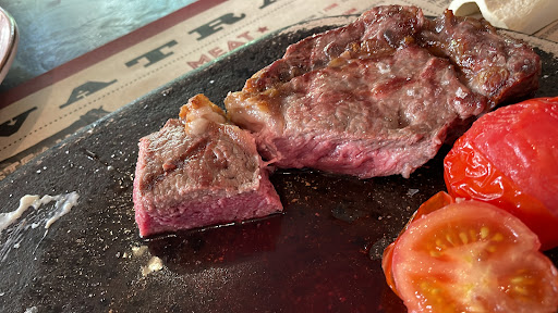 Ribeye is a disaster Waiter tried to sell me all more expensive steaks he could, I went for Ukrainian ribeye, which he disapproved. While meat itself was not fantastic or too bad, it was definitely not a ribeye piece as it had almost no fat at all. Moreover, it’s cooking was highly questionable - steak had a strong flavor and scent of being smoked (why?), also it had strange distinctive “glazed” surface, never normally found on grilled steaks. Meat was looking like boiled. Waiter tried to explain that it was hospered but I didn’t buy it. I had a strong feeling that I am chewing fried Soviet “doctor” sausage, just much more tough.