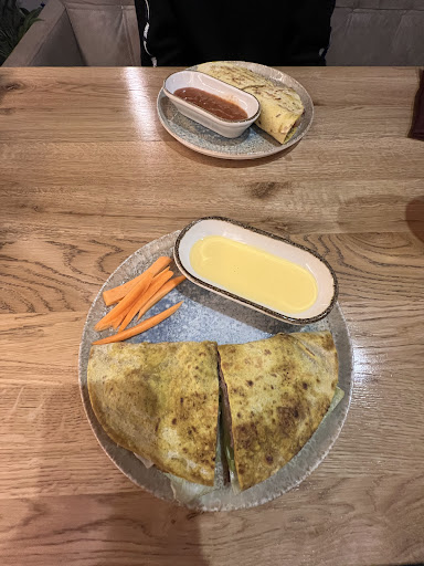 Був сьогодні у вас уперше:) Зайшли з другом, так як заклад працює до 23 години, що дуже грає на руку. Меню виявилося різноманітним і дуже порадувало, потрібно буде точно прийти ще декілька раз, щоб відвідати якусь частину меню та глибше оцінити) Але наявність страв та різноманіття радує. Сподобалися офіціанти. Хлопчина, який обслуговував, був тактовним і приємним. Така ж дівчинка, яка провела до столу. Замовили кесадилью, і це просто щось, ну це дуже смачно. Тонкий смак, порадувало наявність сирної ванночки. У друга був з куркою, теж дуже добрий. Смачні салати і великий їх вибір. Дозамовили крем-суп грибний, і це без перебільшення, найсмачніший крем-суп, що я їв, ну просто дуже зайшло:) Класно, що така велика коктельна карта, обовʼязково прийду ще, щоб відвідати їх саме. Чув, що вони у вас добрі, вибір теж радує. Гарна цінова політика закладу. Єдине, що кинулося в очі, що заклад ж відносно новий, але ремонт у дальній залі для відвідувачів дуже дивний, виглядає якось по 2010х роках, і дуже уж просто) Інтерʼєр геть не чіпляє, і навіть кидається в очі саме простотою, подекуди аж занадто) Як і поєднання кольорів. Але гарна кухня та обслуговування це перекривають звісно. Можливо, така задумка авторська:) Є зала, щоб покурити кальян, що теж супер, якщо компанією сюди:) Тому в цілому це був приємний вечір, з гарною кухнею та розмовами. Рекомендую до відвідування, ще повернуся не раз до...