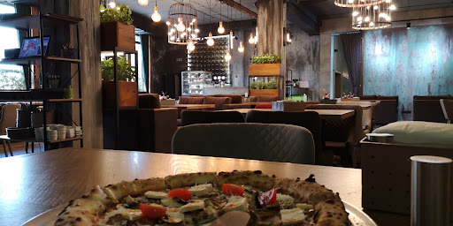 Мы были наслышаны о пицце, смотрели часть видео с Адреем Злотко, проходили мимо, решили зайти попробовать именно пиццу :). Пицца собирается и готовиться на открытой кухне в дровяной печи купольного типа (помпейской). От заказа до стола пицца пришла за 7:15 мин. (тут не пугайтесь, у меня есть профессиональный интерес засекать время :) и я так делаю давненько, особенно в новых мне заведениях). Для сравнения, последний раз в Базилике нам несли пиццу около ~80 минут. Не знаю как так произошло, так как в Базилике пиццу делают в подовых электрических печах и за это время можно было успеть сделать 40 пицц как минимум )). Возвращаемся к MOJO. Вкусный ароматный молочный улун принесли буквально за 3 минуты, браво! ) Пицца получилась достойная. Пиццайоло даже поднимает пиццу вверх купола чтобы она "надышалась" дымом и обрела аромат дров (шарят :)). Они делают неаполитанскую пиццу, то есть воздушное тесто, пышные слегка "поджарые" борты и тонкое основание. Нужно отметить что само тесто вкусное. Это точно не тесто "20-ти минутка" и вряд ли оно замороженное. Подозреваю что сделано на довольно "сильной" муке с выдержкой как минимум в сутки. Начинка свежая, её довольно много. Отличный сыр, тянется, хотя мы брали не с моцареллой, а с "твёрдым сыром", скорее всего голландский или типа того, поправьте меня если что ;)