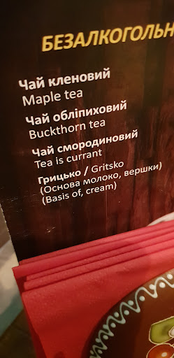 Dessert was falsely advertised as “маківник” (a universally known layer cake or roll with expensive poppyseed paste). Instead we got a sponge cake with a few poppyseeds mixed into the batter. We didn’t touch it and asked to send it back and the waitress refused, and when we complained to the manager she called security to threaten us. We said we would call the police and she smiled and told us to go ahead.