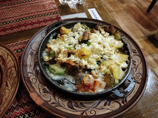 Read moreLovely restaurant with lovely interior design and atmosphere. There was a live music as well which was a nice compliment. To dine in this place we were waiting outside for half hour to get sited. Initially we were taking to the room downstairs and were surprised as several tables were unoccupied. The question is: why they didn't invite us to sit sooner but left us waiting outside on the cold? The basement hall had no internet connection and less nice than the main one, so we asked to be moved as some people left. That was ok. We were permitted to stay on the main room. We ordered for 4 people. First arrived one dish for one of us, 30 minutes later arrived another one and 30 minutes after that arrived other two. They were simple dishes. Why should we have waited for an hour??? We probably were forgotten. The 'pork meat Gutsul stile' was nice as well as 'oven baked vegetables with cheese' but the 'oven baked chicken potatoes under chees' was rubbish. Overal experience: tried it once. It was okeish but wouldn't come back. Service and food were very average as well...