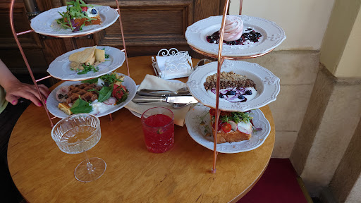This is a beautiful cafe and I had high expectations. I am sad to say that we were quite disappointed though. The service was really slow. Nobody took notice of us when we sat down, I had to go and get the waiter so that we could get menus and order. We had the breakfast menu that it served on a special "afternoon tea stand" that looks really fancy. We got our food 50 minutes after ordering. It was OK but nothing special. Both the salmon and bacon sandwiches were served on a dry toast. Why not use good, fresh bread that I see everywhere in Lviv? The rest of the menu consisted of additional dry bread with some spread. Ordered coffee after our meal and waited 30 minutes to get it. Seriously! This place is really nice and has great potential but the management needs to train their staff, hire more staff or what ever is the problem here. It all looks fancy but does not deliver...