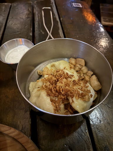 This place is great. The pearl in Lviv's crown. It's not easy to find if you're just following the map, so it certainly helped that I know someone in Lviv. And its location doesn't prevent it from being busy or popular. I can definitely see why. I wasn't in Lviv for a long time, so I didn't dine out much, but when I come again, I will definitely come here again. The food was excellent, very tasty and much better than what I am used to in restaurants in England and for the price I would eat there every day if I could. I am very pleased that I experienced traditional Ukrainian dishes here, I was so full after the meal that I didn't even have room for dessert. It's a shame, because all the desserts looked great.