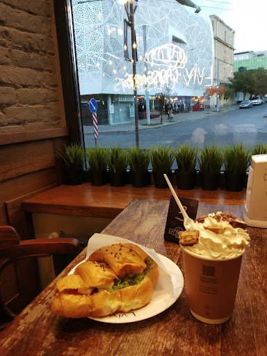 Read moreДобрий день, дуже смачні круасани і кава) але є один мінус. Коли зробили замовлення, нам не дали чеку. Пізніше пішли в туалет, а там виявилося,що потрібно мати код. Не прям неприємно, що код не мали, а неприємно те, що двері були відкритими і нічого не викликало занепокоєння, що звідти можна і не вийти😅. Згодом почала відкривати двері, і зрозуміла, що справа не просто у замку. Виявилося, що двері на магнітні, але це я зрозуміла коли вже 10 хвилин мучалася відкрити двері (на жаль не взяла телефон, щоб покликати когось) в кінцевому підсумку прийшлося влетіти у ті двері щоб розмагнітити їх.... Прошу вам говорити, щоб людина зберігала чек і взагалі видавайте їх своїм покупцям, щоб не було таких випадків😵💫 Їжа то смачна, але -10 хв мого часу і декілька нервових клітин. Сподіваюся на ваше розуміння. Зробіть табличку хоча б, щоб людина знала, що їй потрібен той чек і якщо що могла попросити...