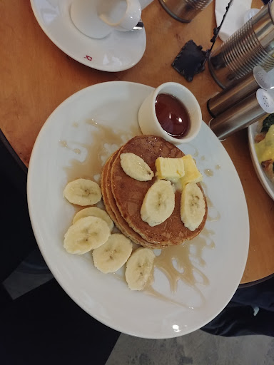 Pancakes and eggs benedict both tasted great and were a good size. My latte with coconut milk was amazing! My friend ordered a pear dessert slice and apparently that was also amazing.