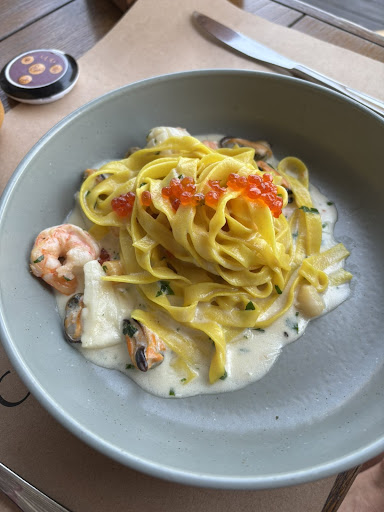 Recently visited YUG restaurant in Odessa with friends to celebrate a birthday. The place really stands out with its stunning Black Sea view—especially from the terrace, where you feel like you’re on a cruise ship. The interior is sleek and modern, with wooden accents and an open kitchen, giving off a premium vibe. The atmosphere is chill, especially at night when the lights come on. We ordered some Mediterranean dishes: the burrata with tomatoes and olive oil was fresh and creamy—loved it; fried zucchini flowers as an appetizer were crispy and light, so good we got a second round; the steak was juicy, but the portion could’ve been bigger for the price. The fish soup felt a bit plain, almost watered down with potatoes, but overall, the food was tasty and fresh, with a focus on seafood. Cocktails (tried the Bergamo) were great and refreshing. The wine, recommended by the sommelier, was spot-on. Service was generally solid—our server, Julia, was attentive, gave good menu suggestions, and brought blankets when it got chilly in the evening. But things felt a bit hectic at times; we waited about 20 minutes longer than promised for our food. Prices are about average for a place like this: around 1500 UAH for two with wine and dessert, which isn’t shocking but not cheap either. One downside—the menu’s all over the place, from Italian to Greek, and it feels like they’re not fully nailing any one thing. Overall, YUG is more about the vibe and the view than groundbreaking food. I’d recommend it for a romantic dinner or sunset drinks, but if you’re after something super unique, it might not hit the mark. We’ll probably come back, but not...