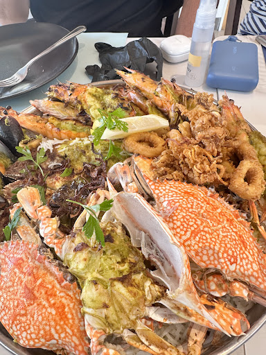Regarding the food, it was average - not recommended. Appetisers were burnt a bit, "extra crunchy" and also oily. They cook all with butter, soup, appetisers, fish... so that kills the taste of any fish, plus adding additional spices. I know is something common here in the UAE, but not healthy at all. Fish and seafood were too cooked that even with butter cooking and seasonings, it were dry. We felt our digestion too heavy. We will not repeat.