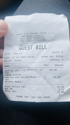 The highlight of my experience was undoubtedly the food. Al Mandi & Al Madhbi House offers a wide range of authentic Arabian dishes that are bursting with flavor. The Mandi and Madhbi dishes were cooked to perfection, with tender meat that practically melted in my mouth. The aromatic spices and fragrant rice complemented each other beautifully, creating a truly memorable dining experience.