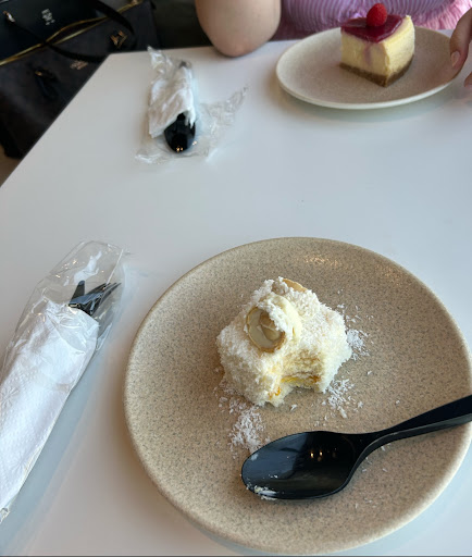 Quite a disappointing experience! We ordered the raspberry cheesecake and raffaello cake. The cheesecake was as average as it gets, while the rafaello cake had perfectly captured the taste of nothing. The texture was really dry and there was no flavor whatsoever. Additionally, the service was not satisfactory. We were served the cakes with plastic utensils… when we were dining in. Upon pointing this out, the staff member proceeded to let us eat with plastic utensils instead of rectifying their mistake. If there was a REASON for not serving the food with metallic utensils, we should’ve been told beforehand; the experience was insulting and not something you expect at such a hyped-up cafe. When we were served the tea, it was brought in paper cups (on the menu it is advertised with a glass set), and we then returned it and asked for the glass set, which is what the tea should’ve been presented in in the first place. The tea was aromatic and tasty at least, but we should not have to teach the waiting staff how to do their job. You’re paying for the food/drinks AND the experience, which at this cafe was underwhelming at best and very disappointing at worst. Clearly the staff has not been trained very well (or maybe at all) in waiting. Otherwise they were polite, but that does not change the fact that the...