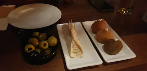 Tapas are very good size (too big actually), but frozen products which was a huge disappointment. We had chorizo sausage with potatoes and fried eggs (all good but potato very dry), chicken finger chips (nice for kids), fried calamari (loads but not fresh) and garlic prawns (very nice!). For mains we had seafood paella (a huge dish with not impressive seafood - mostly small and dried up) and seabass (we had to pay extra as it wasn’t included in the brunch menu of about 5 main courses besides pizzas) but did so due to very few choices.