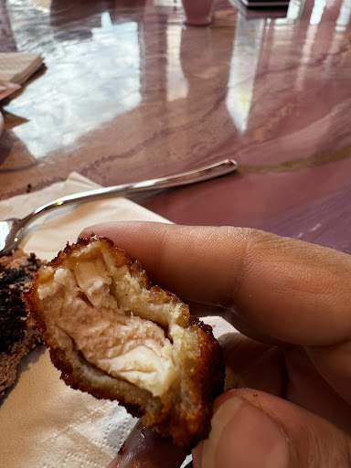 My daughter couldnât even finish one entire tender, and they werenât particularly big. They didnât look too great, but I didnât expect them to be as bad as they actually were. Even I couldnât eat more than a few bites. I have no idea where the parmesan was, but there was certainly no parmesan taste. In fact, the only flavor present was that of old chicken. The thick, slightly chewy layer of cornstarch in between made things worse (see the picture). The fries, however, were crispy and ended up being the best part of both our meals.