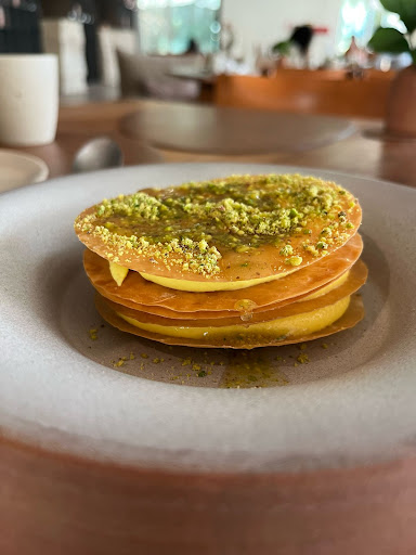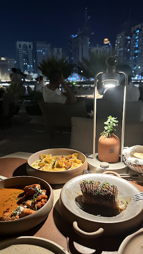 Read moreFirst of all, really inexpensive for a Michelin starred restaurant. I couldn't believe the food was such high quality for such a reasonable price. Everything we had was inventive, well balanced, and delicious. The chef really likes hazelnut. The setting, from the dining room both indoors and outdoors, was gorgeous and even the plates and silverware were works of art. The most impressive dish to me was the deconstructed dates cake dessert, and I usually am not a big fan of dessert. Amazing textures, flavors, and not overpoweringly sweet. It looked like a desert landscape. Other dishes we liked include the cauliflower tabbouleh, Emirati shrimp taquitos, and the green egg. Portions were rather large too for this type of restaurant. The cuisine feels like it's French Emirati fusion.
