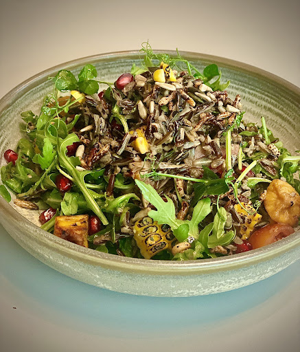 Drinks ordered we sat to look at the menu. Habib again to the rescue to help. We ordered Beef Tacos, and Pumpkin Soup for appetizers and the Chicken Mango salad and Wild Rice Salad . The food came quickly and looked amazing. The taste was delicious, the beef tacos were crispy and tender at the same time. The Wildrice Salad was a glorious party for my tastebuds. It was grainy and fresh sweet and savory.