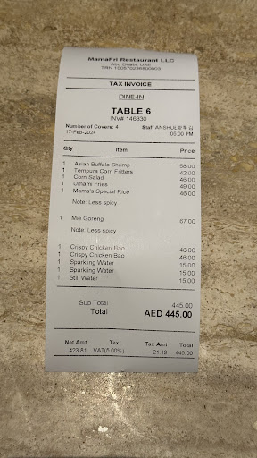 Read moreMamafri has been always our go to restaurant. And asked our dad to come because we love their food it was his first time. Last week on 17/2 we went to Abu Dhabi branch and it was awful experience definitely not visiting again!! And the staff and the manager are so bad don't know how to solve problems only making it worse.