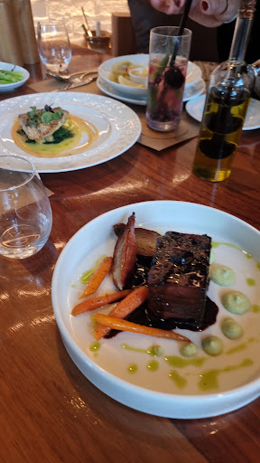 Then its this absolutely gorgeous plate featuring a portion of braised 120 day bone in beef short rib on a bed of veggies with a soy glaze that absolutely was the most flavorful, tender and tasty beef we've had in a while, definitely the highlight of the meal.