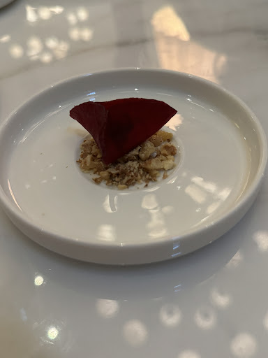 The amuse bouche was next — a single, delicate bite of peas and cream. We tragically lost ours mid-photo in a freak fork accident. We asked if it could be replaced. It was not. Thank you, we love it when restaurants boldly choose to save a few dirhams over providing top-notch customer service, especially at this price point. We appreciate this valuable lesson.