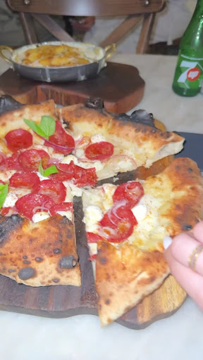 From the very first breath upon approaching the threshold of NAPO Pizzeria, one is enveloped not merely in warmth but in an invisible yet unmistakable embrace of hospitality, a prelude to an experience that transcends the transactional notion of dining. The gentle flicker of ambient lights, the harmonious blend of rustic wood textures and contemporary Italian flair, the careful choreography of every design element all conspire to draw you inward, not just into a physical space, but into an emotional landscape. One does not simply walk into NAPO; one is lured, almost seduced, as if by a secret promise whispered by the spirit of Naples itself. To call NAPO a restaurant would be a grave injustice. It is, in truth, a passageway into an ancient culinary mythology, a curated journey through the artistry of Italian tradition reimagined with the precision of a modern maestro. Here, food is not served; it is composed. Every detail is orchestrated with the reverence of an opera, every bite a stanza in a gastronomic symphony. Let us speak first of the soul of the establishment, the dough, which is no mere vessel but a protagonist in its own right. Fermented to perfection, its texture evokes the craftsmanship of a generations-old taboun oven, and yet its complexity is unmistakably contemporary. It is charred just enough to create that elusive balance, a smoky crispness giving way to airy elasticity, recalling both the peasant simplicity of Italian village life and the elevated refinement of modern Neapolitan technique. With every chew, one feels transported to distant orchards, sunbathed courtyards, and the flour-dusted hands of nonnas kneading devotion into every batch. Now to the alchemy of ingredients, each chosen with the care of a jeweler selecting the rarest gems. The cherry tomatoes, blushing with sun-ripened sweetness, burst against the tongue in a syrupy tang that harmonizes rather than clashes with the assertive salt of an impeccable cheese medley. These are not cheeses of convenience but cheeses of consequence: each one aged, nuanced, and gloriously distinct, from the buttery caress of a Fior di Latte to the bold personality of a smoked Provola. Their fusion is not happenstance; it is an orchestrated duet, their dialogue on the palate both comforting and complex. A generous hand is evident in the toppings but not an undisciplined one. Generosity here does not mean excess but rather abundance with restraint. Every basil leaf is a brushstroke. Every glisten of olive oil, drizzled like sunlight over rolling hills, calls forth a hundred memories of breakfasts past, taboun bread dipped in the green gold of early harvests, childhood laughter echoing through terraced groves, and the timeless Jordanian ritual of oil and bread as morning poetry. And just as you think the overture has concluded, enter the overtly seductive appetizer, a plate of battered shrimp and calamari, puffed to near ethereal lightness, their delicate crunch a whisper of the Mediterranean breeze. The accompanying chili sauce is a marvel of restraint, bold yet not brash, peppery yet never punishing, a piquant caress that lingers like the afterglow of a summer romance in the Amalfi twilight. Service at NAPO deserves its own ovation. There is a ballet to it, silent, swift, intuitive. Plates appear as though conjured by intention, not by hand. Glasses are refilled with a glance, not a request. The staff's choreography reflects both discipline and joy, suggesting not just training but a deep shared pride in the performance they deliver nightly. As for the craftsmanship, oh, chapeau bas indeed. The art of dicing, slicing, arranging, it is sculpture in motion. The toppings are not thrown, they are positioned. The chopping techniques are not merely functional, they are expressive. And timing, that invisible maestro of every great meal, is honored with religious fidelity. In the end, NAPO is not simply a place where one eats. It is a place where one remembers how sacred, how transcendent, how utterly human the act of sharing food can be. It is not...