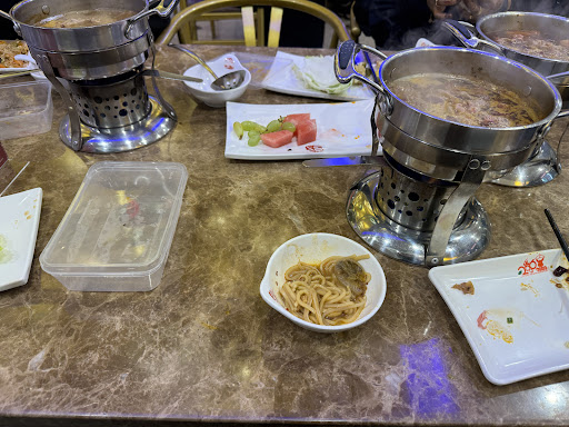 This restaurant is a city centre hidden treasure. It's shiny clean, and well decorated in classic Chinese style. However, you will find it in old cinema building on Najda Street. The building itself looks scary as escalators do not work, and everything around is missing the cleaning. Well, the restaurant offers only 2 options: Hot Pot - 50 aed all you can eat and Barbecue and Hot Pot for 69 aed. For both options, the choice of foods is endless: you have display of all possible greens, root vegetables, fungus, seaweeds, mushrooms, tofu, fish slices, shrimps, and another freezer with meat slices and fish/crab balls. For the barbecue, there is a separate display of marinated meats and chicken. Inside the restaurant, you will find separate shelves with all kinds of Chinese sauces, chillies, condiments, confitures, crashed nuts, ext.and also, a range of sides like cooked veggies, fried noodles, and rice together with shrimps and spring rolls. Those are for limitless use. Everything is for self-service. Staff is good. However, it looks like they are a few and busy. It would be good to have a bit more attention. Restaurant accepts only cash. Sorry, we didn't have more pictures, we have been...
