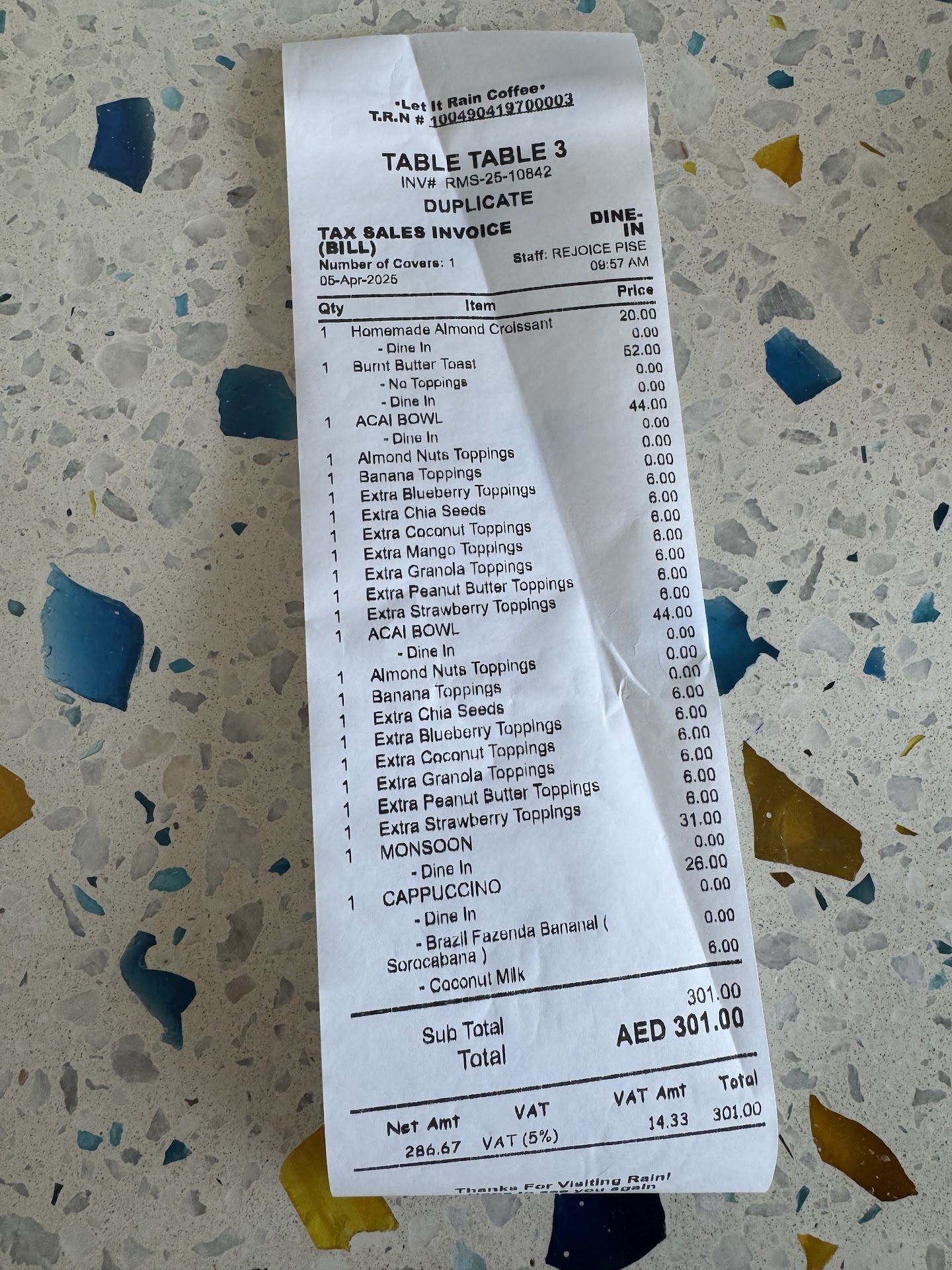 We pulled up for a simple takeawayâFrench toast and a V60âand it felt like an episode of a comedy of errors. First, the waiter came out without a menu. Then, he didnât know what a croissant was (despite Rainâs Instagram full of croissant posts) and even got confused about which coffee beans were availableâtwice. A second staff member came out to âreconfirmâ the order but spoke so poorly we could barely understand her. By the time a third person finally brought out our food (after 20 minutes), we were over it.