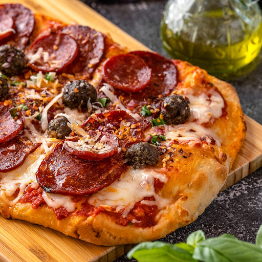 their delicious Romanella meat pizza from start to finish! their fresh, handmade dough is topped with a mouthwatering combination of tomato pulp, fior di latte mozzarella, spicy salami, pepperoni, Italian meatballs, red and green onion, shaved pecorino Romano and...