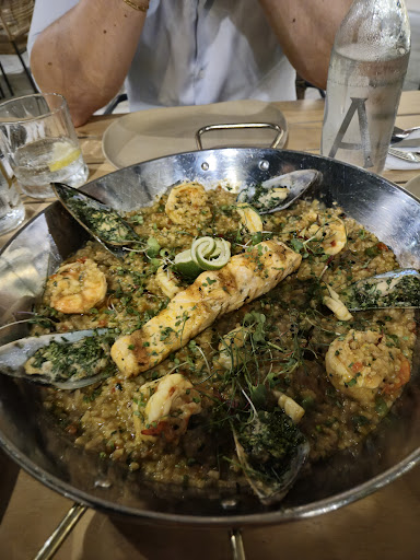 Lastly, the seafood paella was the most disappointing dish of the evening. I would suggest renaming it, as it didn’t resemble a traditional Spanish paella. The rice was replaced with overcooked small pasta, topped with a mix of herbs and scattered pieces of fish, including a salmon fillet, which felt out of place.