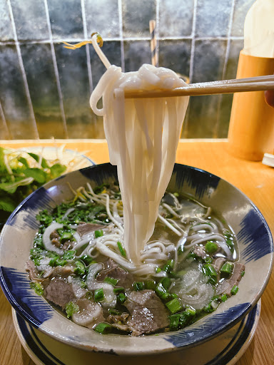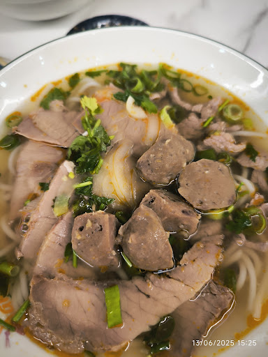 • I decided to try a classic noodle dish, the Beef Pho M, which includes sliced braised beef brisket and beef tenderloin (62 AED). I also had the classic Vietnamese cold tea, a very good regular green tea (12 AED). Everything tasted great, and I highly recommend it. [Prices from August/2024]