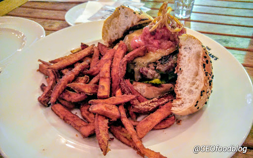 The burger had Monterey Jack cheese (American) and a special sauce, topped with fried onions. Unfortunately, we did not enjoy the burger as it was very sloppy and difficult to eat. The burger patty wasn't anything special and the sweet potatoes were forgettable.