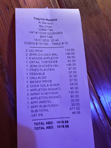 Read moreI visited Ting Irie Mamsha recently and while the food and atmosphere were as vibrant and flavorful as expected, the experience was soured by what can only be described as an unnecessary and frustrating ordeal over a simple discount.
