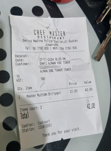 Read moreI ordered home delivery from Chef Master Restaurant, and the experience was fantastic! The person who took my order over the phone was very polite and helpful, making the process smooth and pleasant. The mutton biryani was incredibly tasty, with outstanding quality and generous quantity. Highly recommend this restaurant for both their excellent service and delicious food. Will definitely...