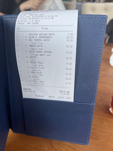 In short, Souryana Restaurant and Cafe is a must-visit for anyone who loves Syrian cuisine or is looking to try something new and exciting. The food is authentic, flavorful, and expertly prepared, and the atmosphere is warm and inviting. We can't wait to go back and try more of the menu!
